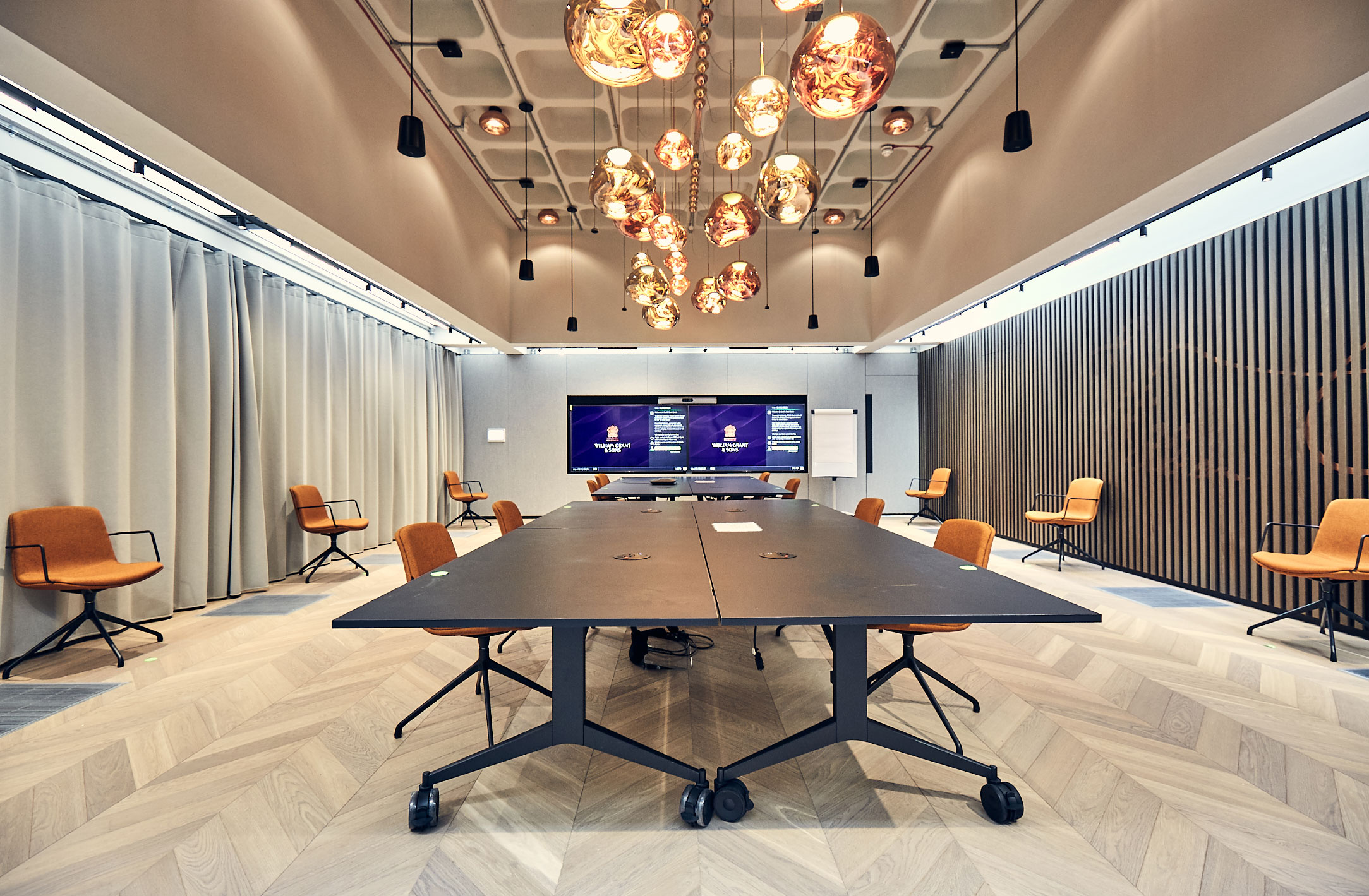We were appointed by the team at William Grant & Sons to deliver their new office solution at the architecturally iconic 1970’s building that was once the Richmond Upon Thames magistrates court. The new office environment needs to not only respect the architectural heritage of the building but also enhance it whilst framing this truly activity based working (ABW) environment that was masterminded by the originators of ABW Veldhoen.